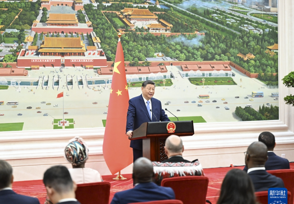 儀式結束后,習近平在北京廳對使節們發表講話。