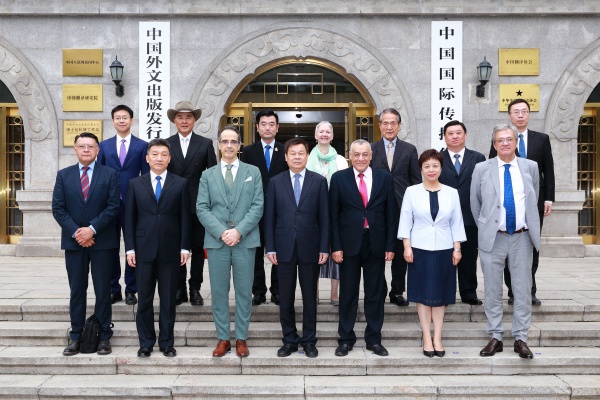 5月22日上午,中國外文局局長、第二屆蘭花獎評委會主任委員杜占元會見到訪的第二屆蘭花獎外籍評委一行。中國外文局副局長、第二屆蘭花獎評委會副主任委員于濤,中國外文局副總編輯、中國對外書刊出版發行中心主任、蘭花獎秘書處秘書長陳實參加會見。