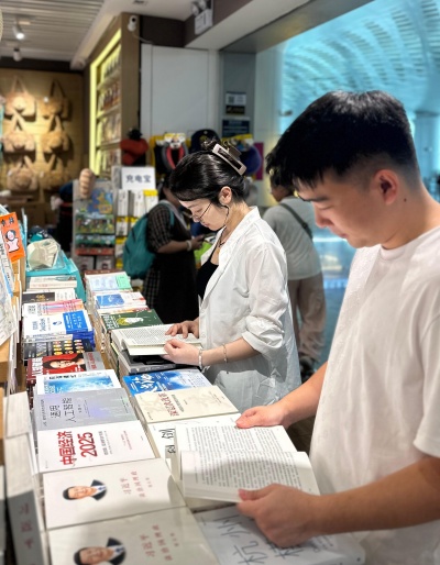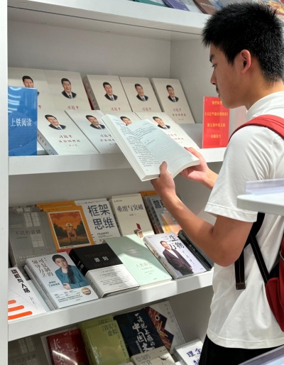 以下為《習近平談治國理政》第五卷中英文版圖書在各大機場、高鐵站書店上架銷售及讀者閱讀的場面。