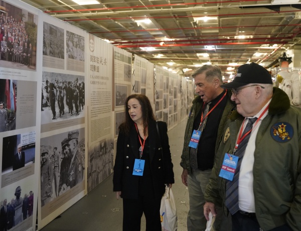 本次活動由大黃蜂號航空母艦博物館、卡特中心、抗日戰爭紀念館等友好團體共同主辦。百歲老兵黎玉榮、林華健等中美反法西斯戰爭親歷者和后人,以及中美歷史學家、智庫學者、青年代表等各界和平人士400余人參加活動,共同緬懷二戰歷史,傳遞和平心聲。