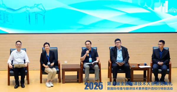北京外國語大學、上海外國語大學、復旦大學、對外經濟貿易大學、大連外國語大學有關同志分別以《口譯技術在中國學界的接受度歷時對比研究》《同聲傳譯人機協作新范式:自動語音識別(ASR)與自動語音翻譯(AST)技術的應用及啟示》《人工智能時代翻譯跨學科人才培養模式探索》《生成式人工智能時代的翻譯技術教學:內容與模式》《生成式人工智能背景下翻譯教育的發展與創新》《智能時代人機協同翻譯的譯者主體性審思》為題作主旨報告。