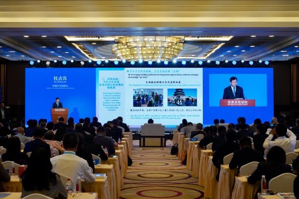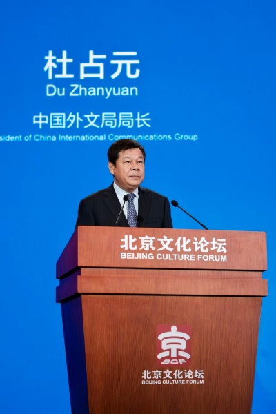 9月23日,《從倡議到實踐:2024中外文化交流報告》在2025北京文化論壇發布。中國外文局局長杜占元在論壇重要成果發布專場活動環節介紹報告主要內容。