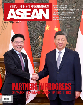本期《中國東盟報道》推出“中新建交35周年”紀念特刊,通過系列文章對雙方政治、經貿、文化等方面成果進行梳理,并邀請各行各業親歷者講述個人故事。本期內容彰顯了兩國源遠流長的伙伴關系與共同成就,體現了本刊致力于促進區域對話與合作的持續努力。