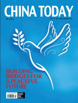 本期《今日中國》(阿文、英文)封面通過故事性的報道,回顧了戰爭中的人道主義精神與國際友誼,分別聚焦參加“今日中國會客廳——和平之橋:大灣區與歐洲青年領袖對話”中歐青年領袖,“里斯本丸”事件獲救英軍戰俘的后代,上海猶太難民紀念館,有著“南京好人”之稱的約翰·拉貝的孫子、德國海德堡大學名譽教授、全球約翰?拉貝交流中心主席托馬斯·拉貝,講述正在發生和曾經發生的、閃爍著人道主義精神和國際友誼的故事,從不同側面展現推動構建人類命運共同體、共筑和平之橋的當代價值和意義。